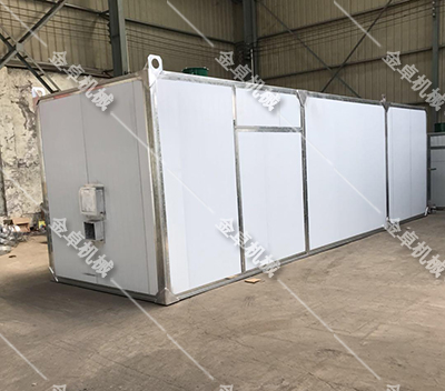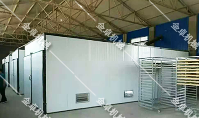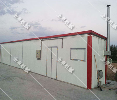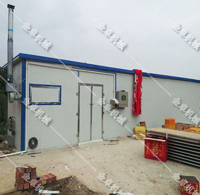 2、物料室 :物料擺放形式為托盤結(jié)構(gòu),物料室與供熱室用鋁板隔開稱為隔風(fēng)板。設(shè)備與烘房完全隔離分開運(yùn)行,因此被烘干花生不會(huì)接觸二氧化硫氣體,更不會(huì)出現(xiàn)火災(zāi)。