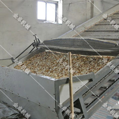 將處理好的山藥片放置在上料機上,調整好鋪設厚度,上料機上有勻料器可以調整山藥鋪設厚度。