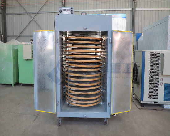花椒烘干箱是將放好花椒的托盤放在箱內(nèi)的格子型架子上,啟動后可自動旋轉(zhuǎn)烘干,保證每個托盤的花椒都能充分干燥。中間無需翻動。